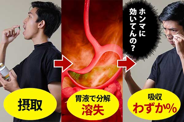 胃液で成分の大半が破壊